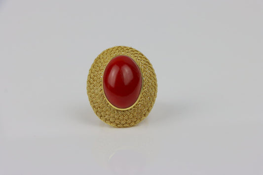 Large Vintage 14K Gold Red Coral Cabochon Ring