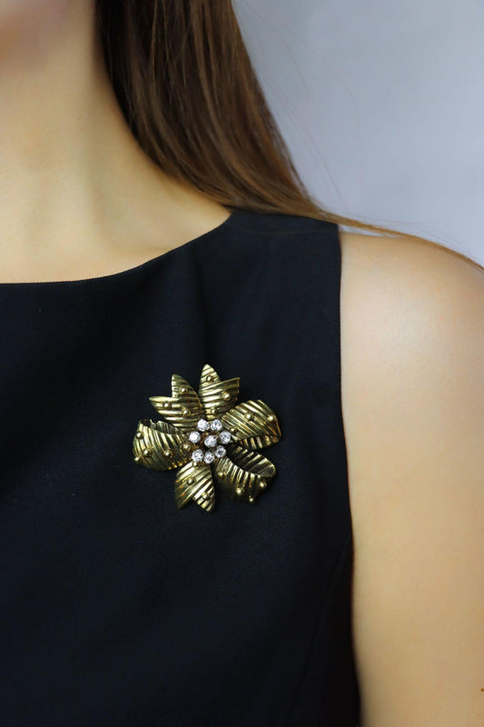Vintage Buccellati 1990s 18K Tricolor Gold Flori Magnolia Brooch