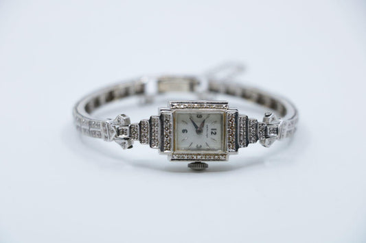 Vinatge Hamilton 14K White Gold Diamond Watch Bracelet
