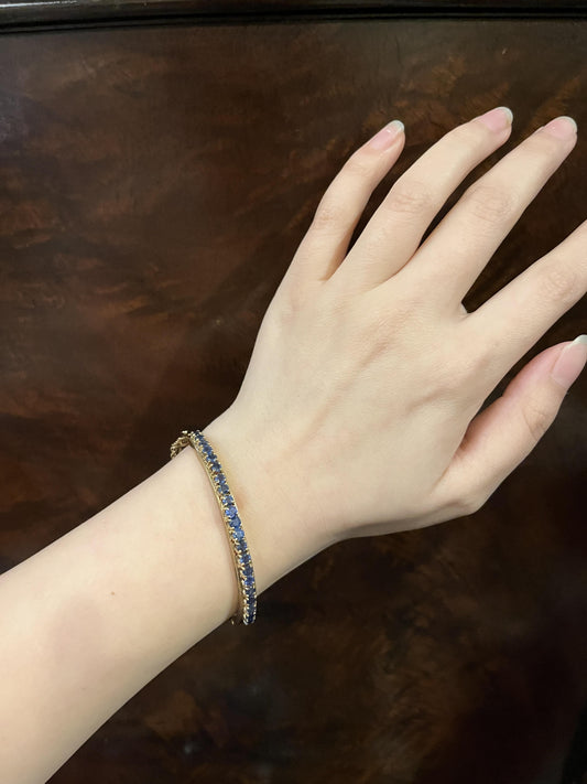 Vintage 14K Gold Sapphires Bangle Bracelet