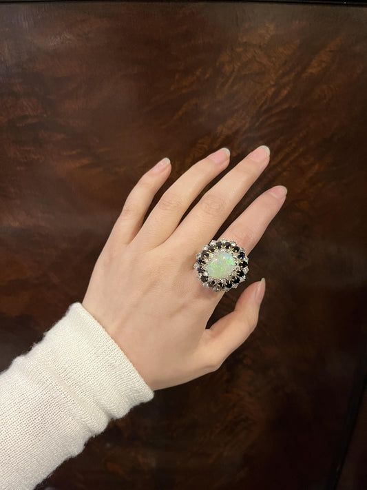 Vintage 14K White Gold Opal Sapphire Diamond Ring