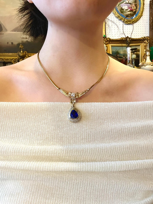Vintage 18K Gold Diamond Tanzanite Necklace
