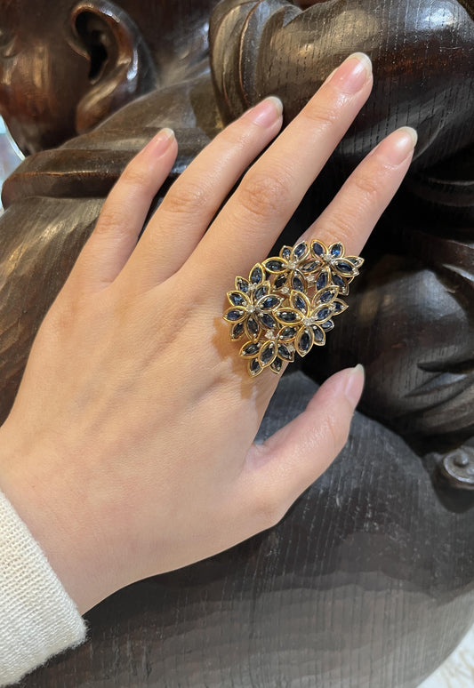 Vintage 14K Gold Diamond Sapphire Bouquet Ring
