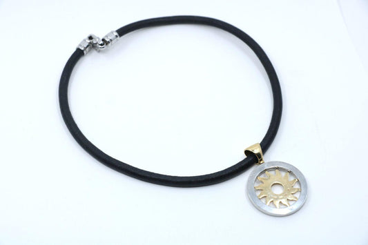 Buglari Tondo Sun Pendant Stainless Steel With 18K Yellow Gold Cord Necklace