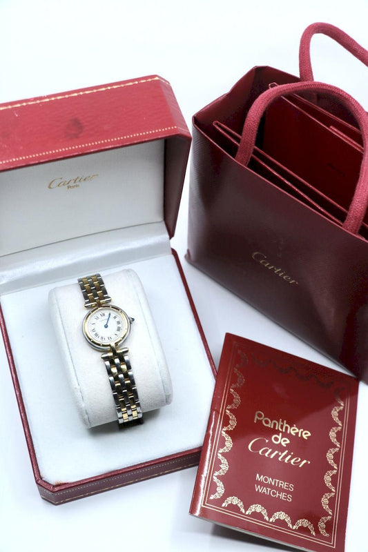 Vintage Cartier Panthere Round 18K Gold Silver Quartz Women's Watch