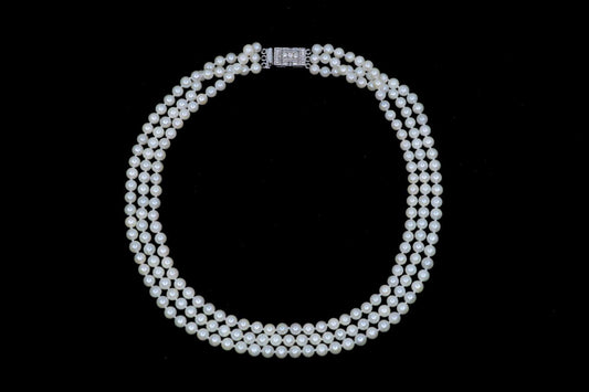 Vintage 14K White Gold Diamond Muti-Stand Pearl Necklace