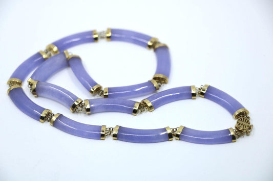Vintage 14K Gold Lavender Jade Necklace