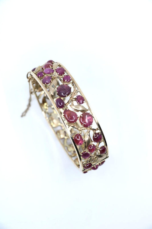 Vintage 14K Gold Gradient Pink Sapphire Leaf Cuff Bracelet