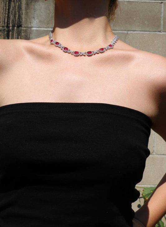 GIA Certified Burma Ruby Pidgeon Blood Diamond 18K Gold Necklace