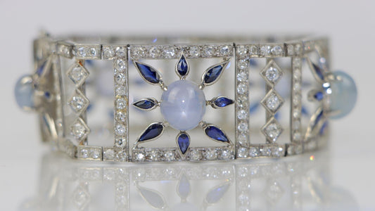 Vintage 18K White Gold Diamond Sapphire Star Sapphire Bracelet