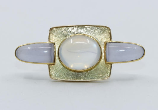 Vintage 18K Gold Moonstone Chalcedony Brooch Pin