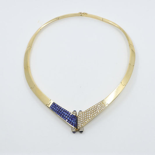 Vintage 18K Gold Sapphire Diamond Torque Necklace