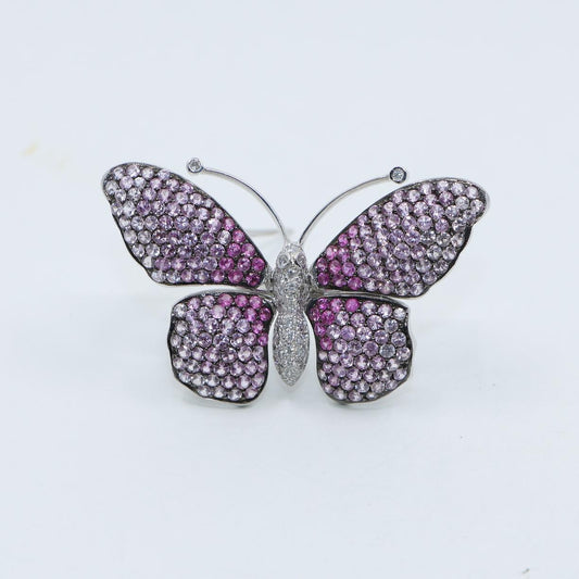 Vintage 18K White Gold Pink Sapphire Diamond Butterfly Brooch Pin