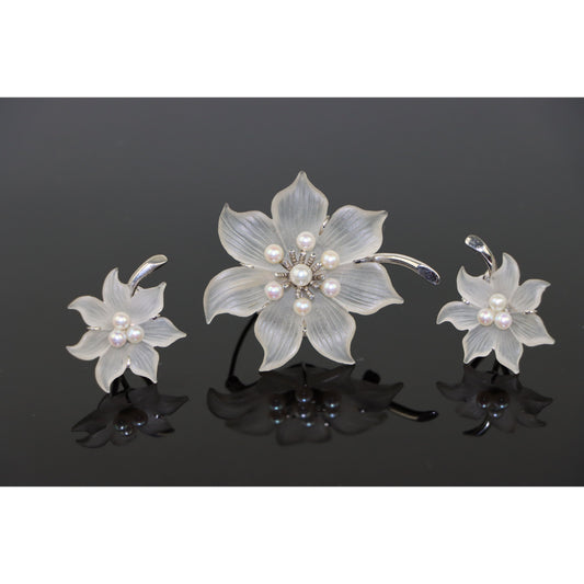 Vintage 14K White Gold Crystal & Pearl Brooch Pin Earrings Set
