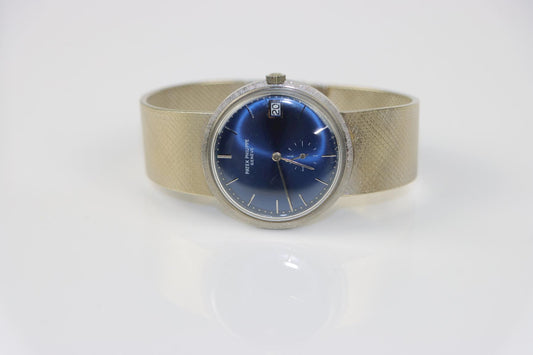 Rare Patek Philippe 18K White Gold Blue Dial Mesh Bracelet Watch CALATRAVA 3445