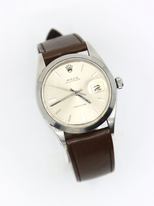 Vintage ROLEX Oysterdate Precision Date Watch with Brown Leather Strap