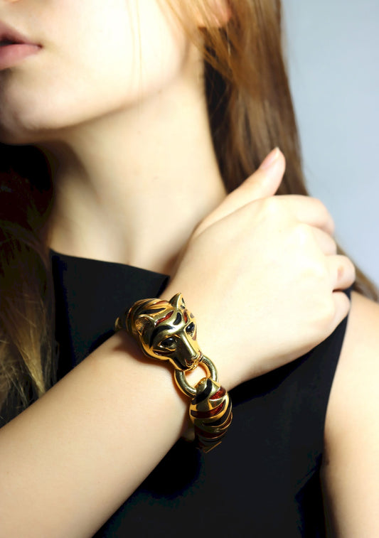 Vintage Ciner Gold Tone Enamel Tiger Bracelet
