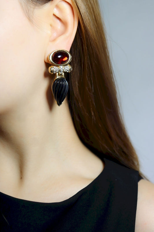 Vintage Schreiner Gold Tone Brown Crystal Earrings