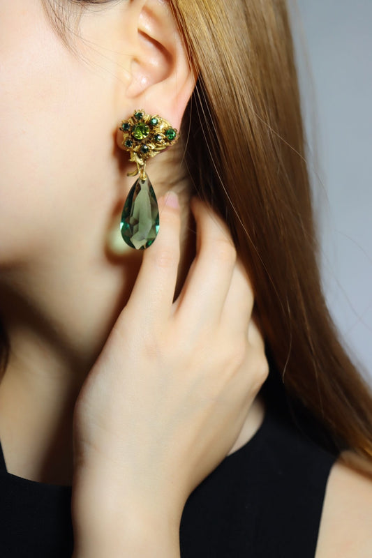 Vintage Miriam Haskell Gold Tone Rhinestone Green Crystal Earrings