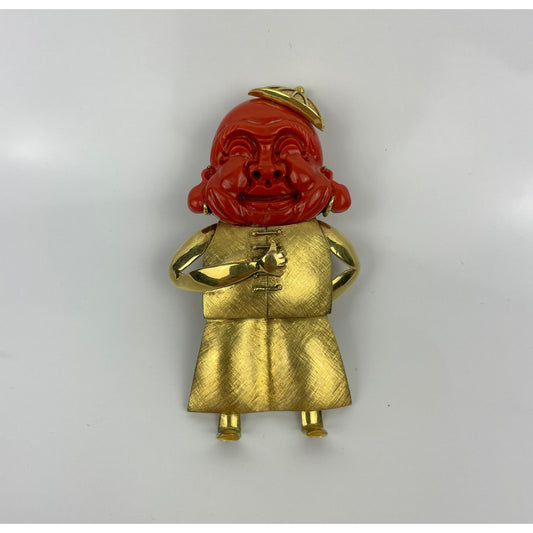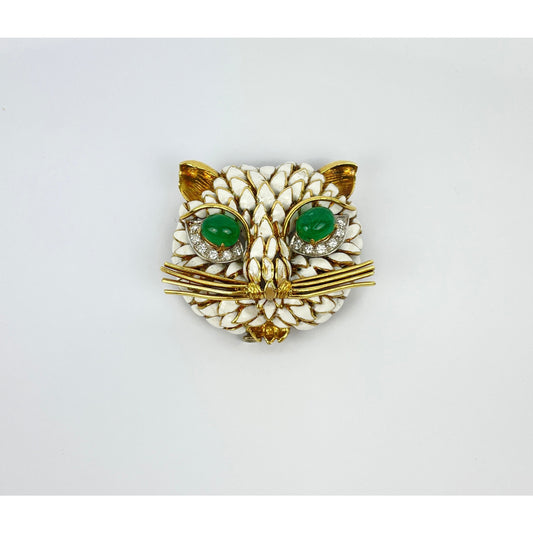 Vintage 18k Gold Emerald Diamond Ename Cat Brooch Pin