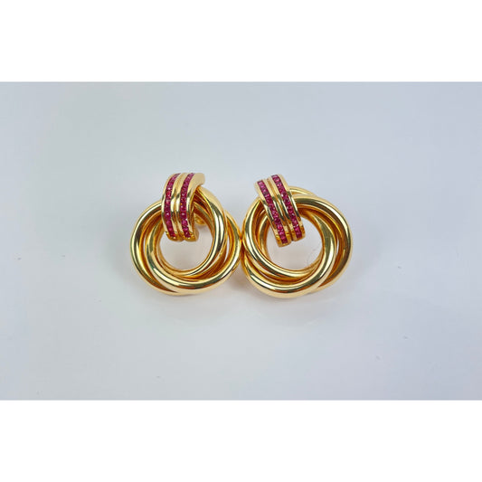 Vintage Pair of 14k Gold Ruby Trinity Loop Earrings