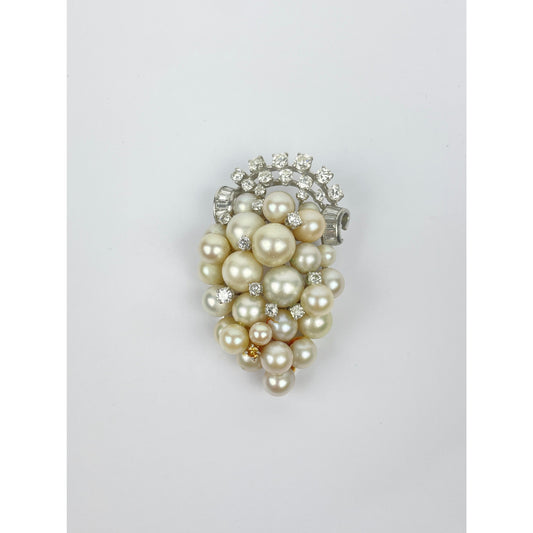 Vintage Platinum Diamond Pearl Cluster Brooch Pin