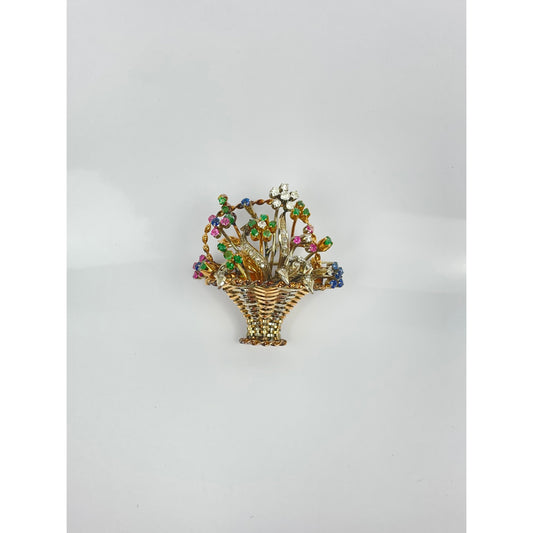 Vintage 18k Gold Diamond Sapphire Emerald Flower Basket Brooch