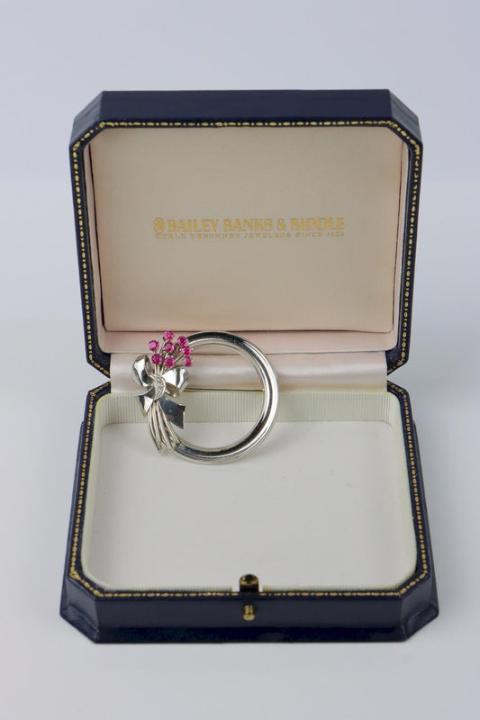 Vintage Bailey Banks & Biddle Ruby Platinum Diamond Brooch