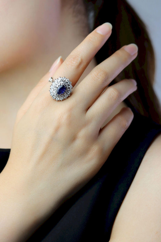 Vintage 14K White Gold Sapphire Diamonds Ring