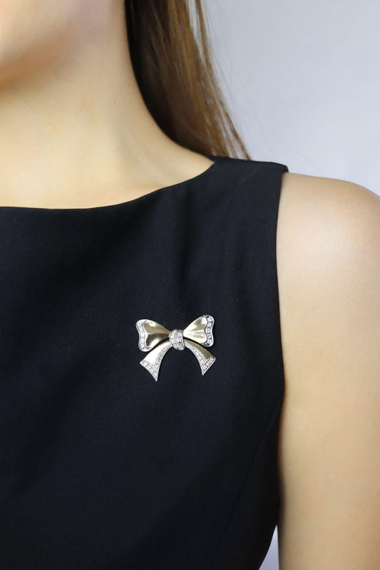 Vintage 14K Gold Diamond Bow Brooch Pin