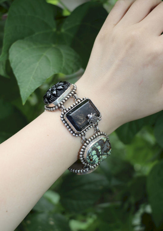 LaNouvelle Bague 18K Gold & Silver Enamel Diamond Bracelet