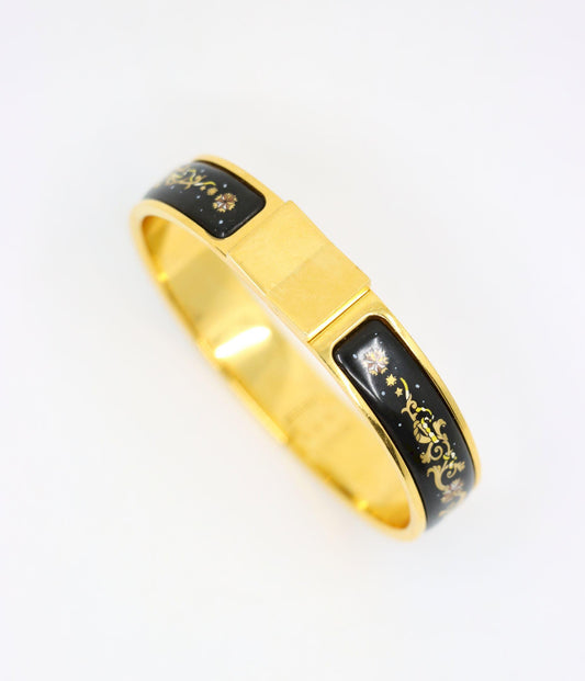Hermes Gold Tone Pattern Enamel Bracelet