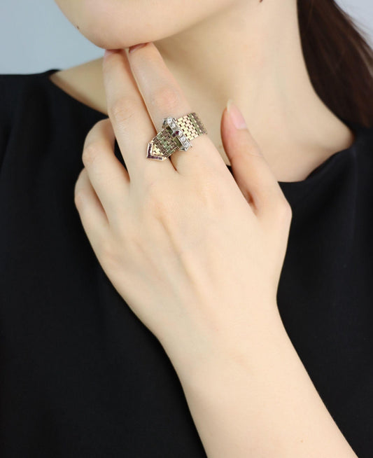 Retro 14K Tri-Tone Gold Diamond Ruby Buckle Ring
