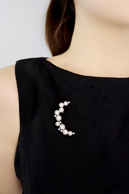 Tasaki 18K White Gold Diamonds Pearl Moon Brooch