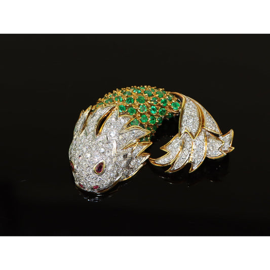 La Triomphe 18K Gold Diamond Emerald Ruby Fish Brooch Pin