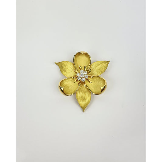 Tiffany & Co. Classic Collection 18k Gold Diamond Dogwood Flower Brooch
