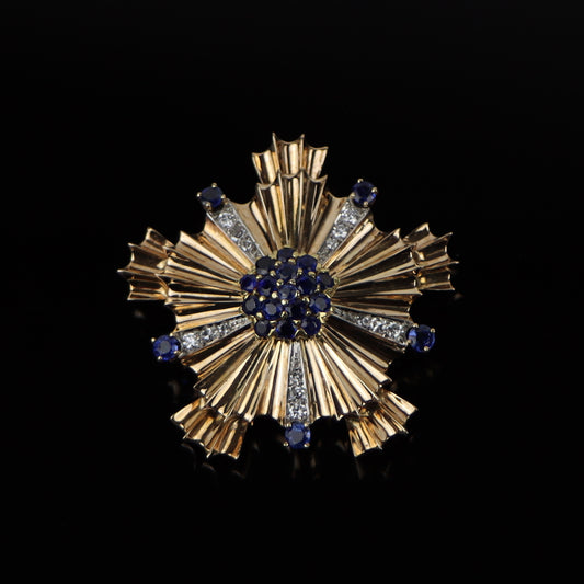 Retro Tiffany & Co. Diamond and Sapphire Starburst Brooch Pin