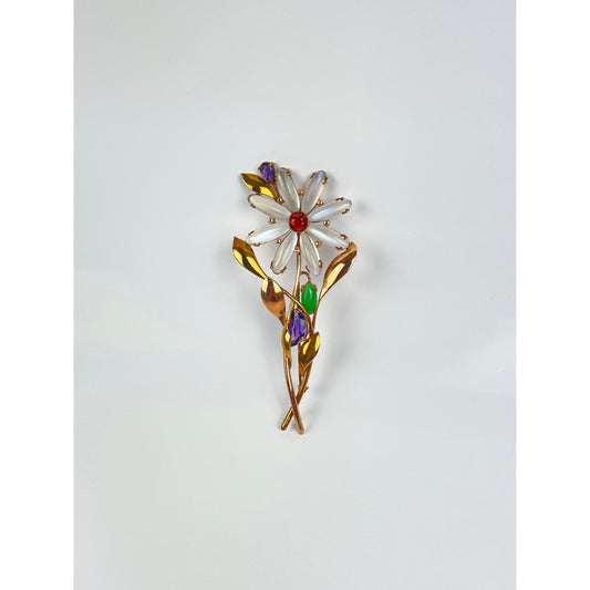 Retro 14k Gold Moonstone Jade Amethyst Flower Brooch Pin