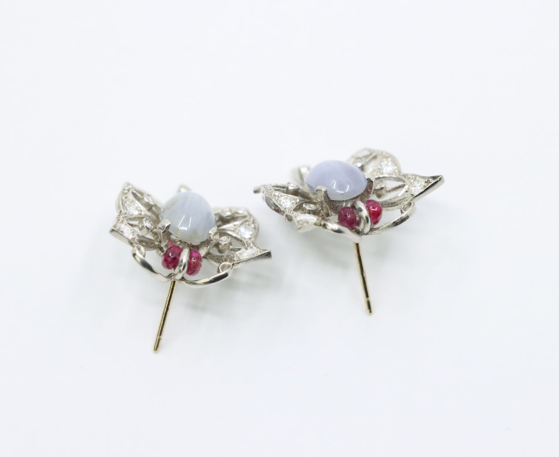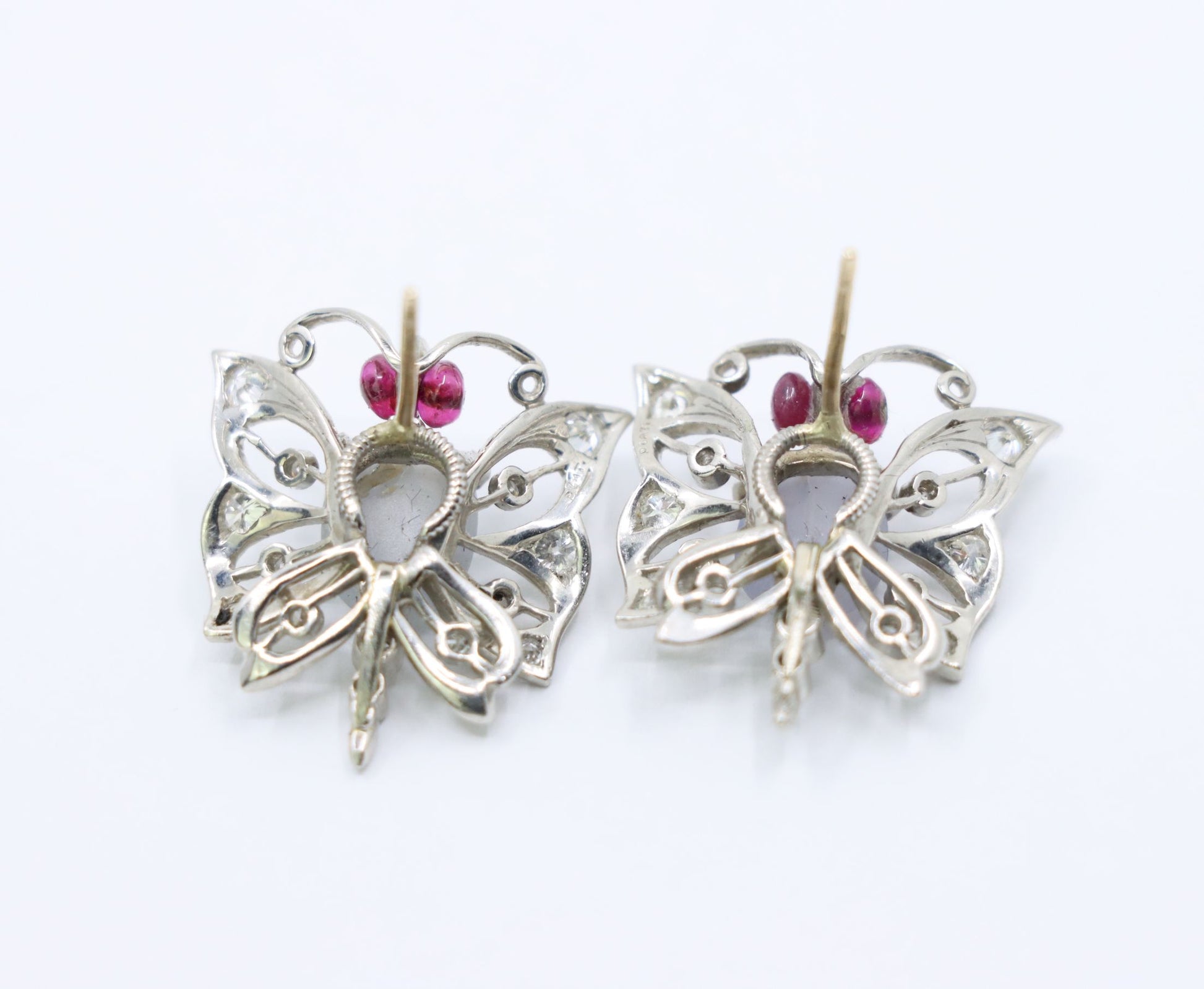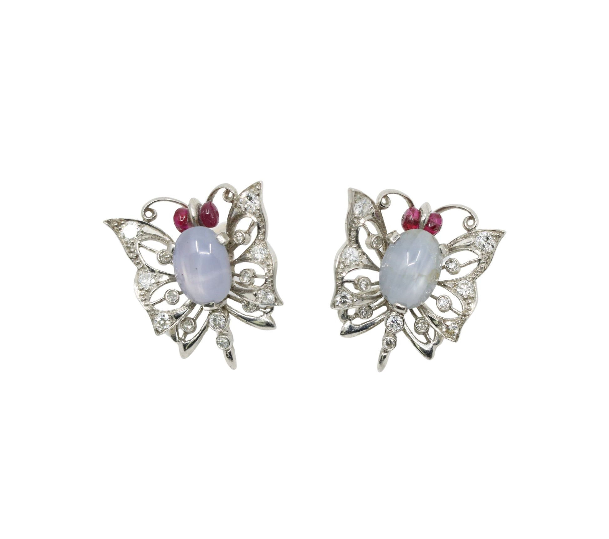 Vintage 14k White Gold Star Sapphire Agate Diamond Butterfly Earrings