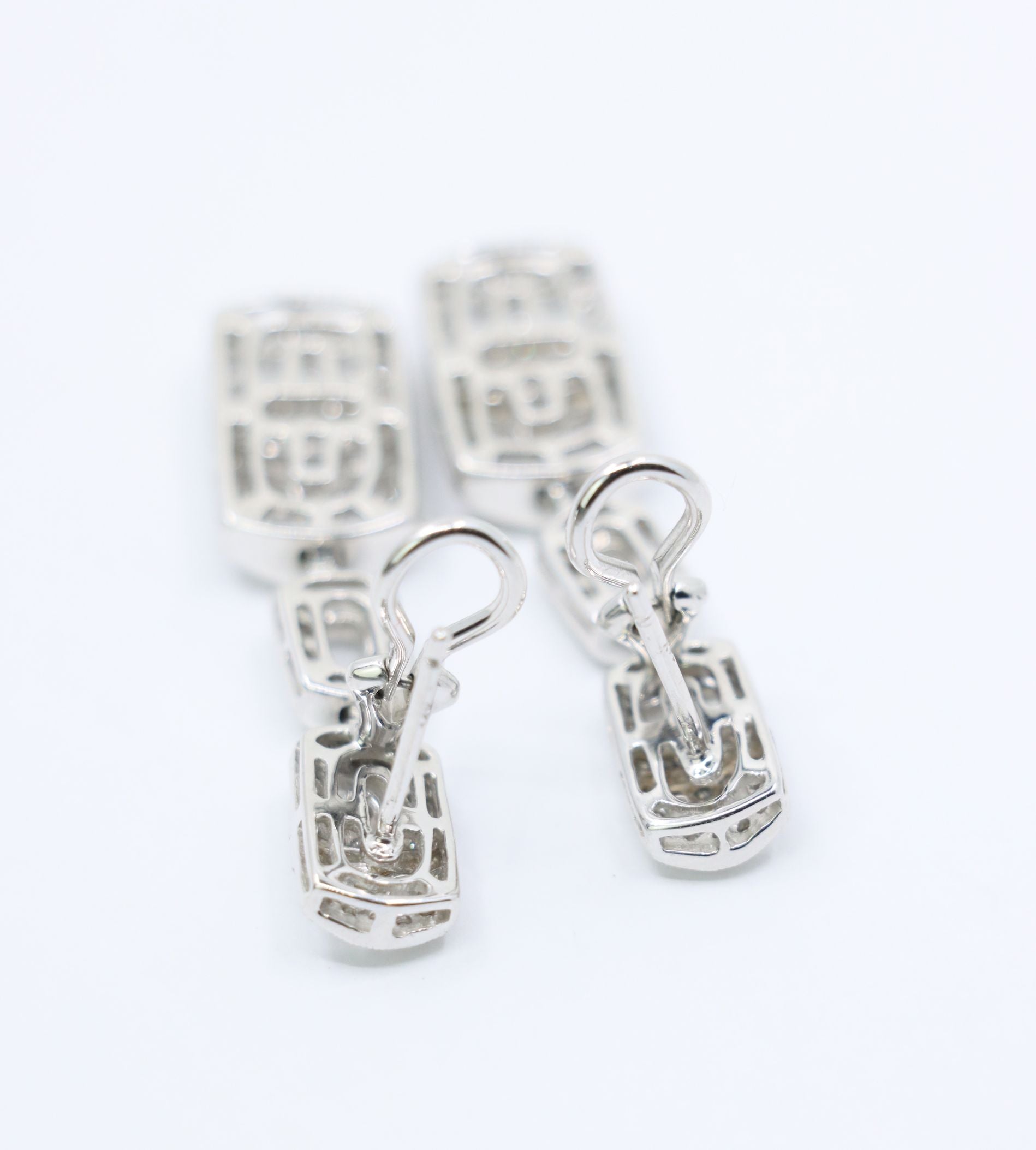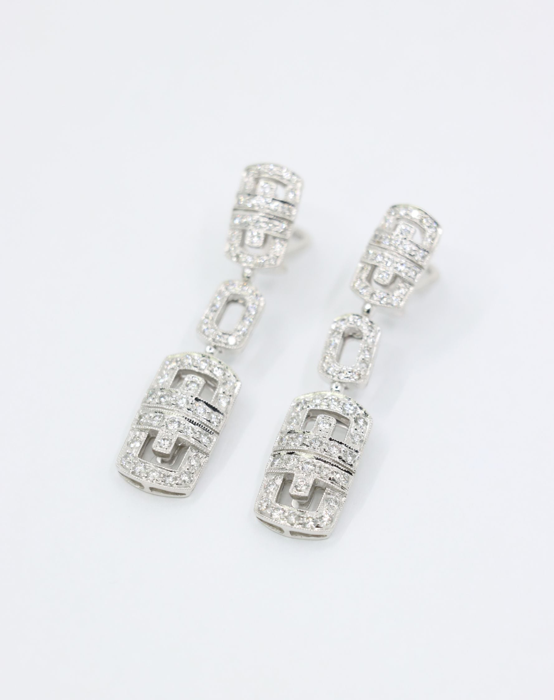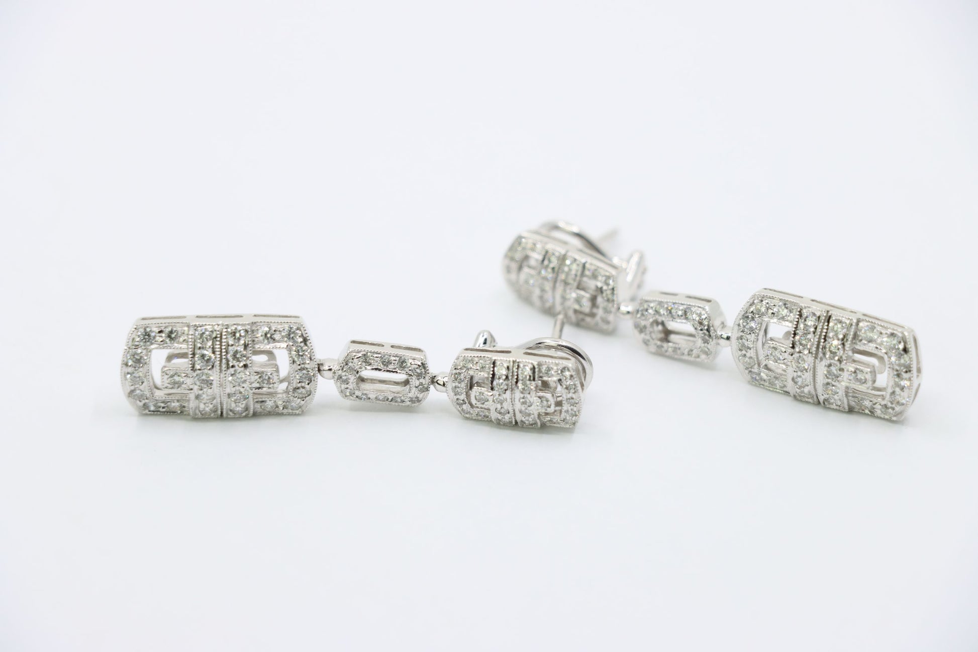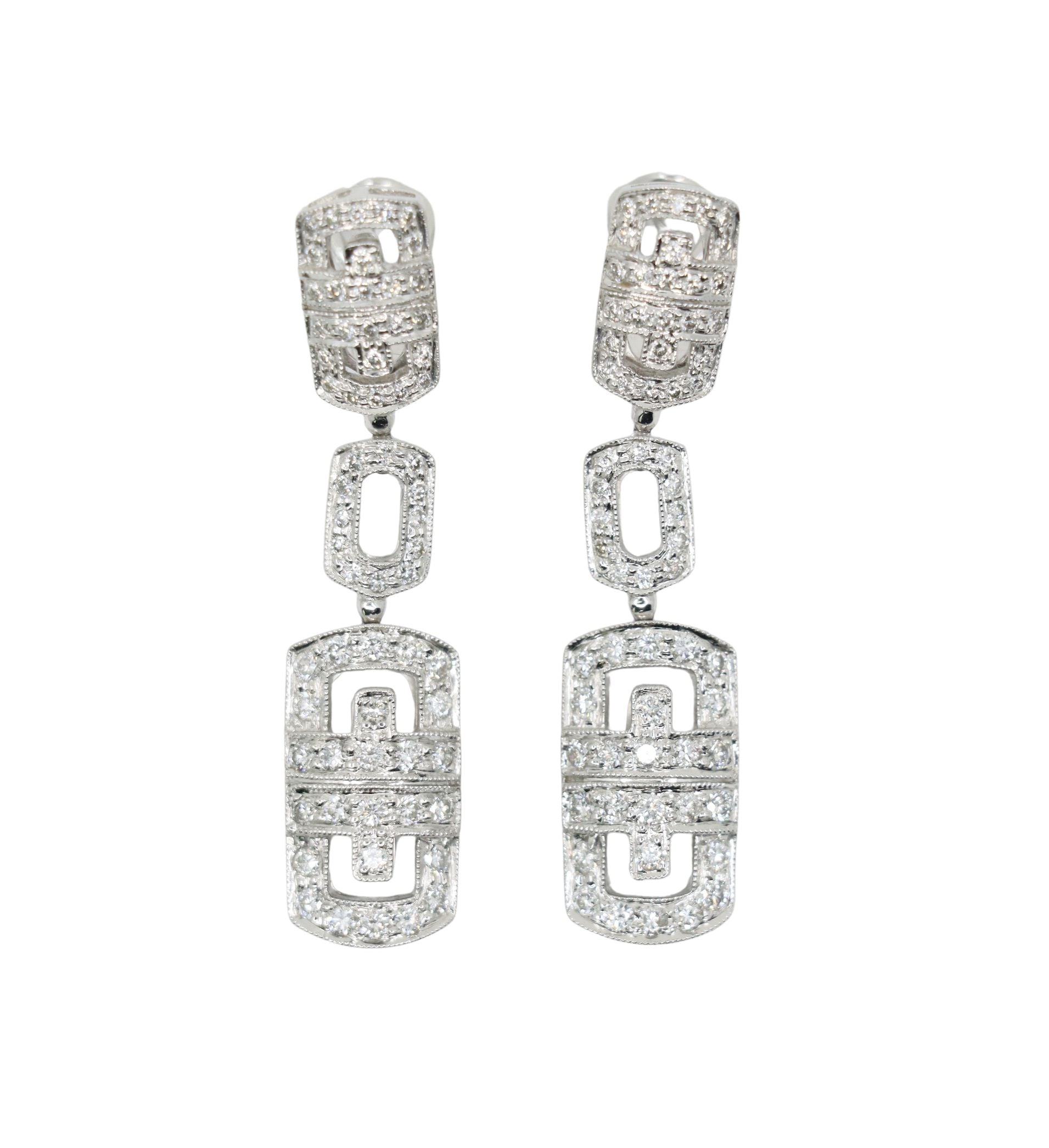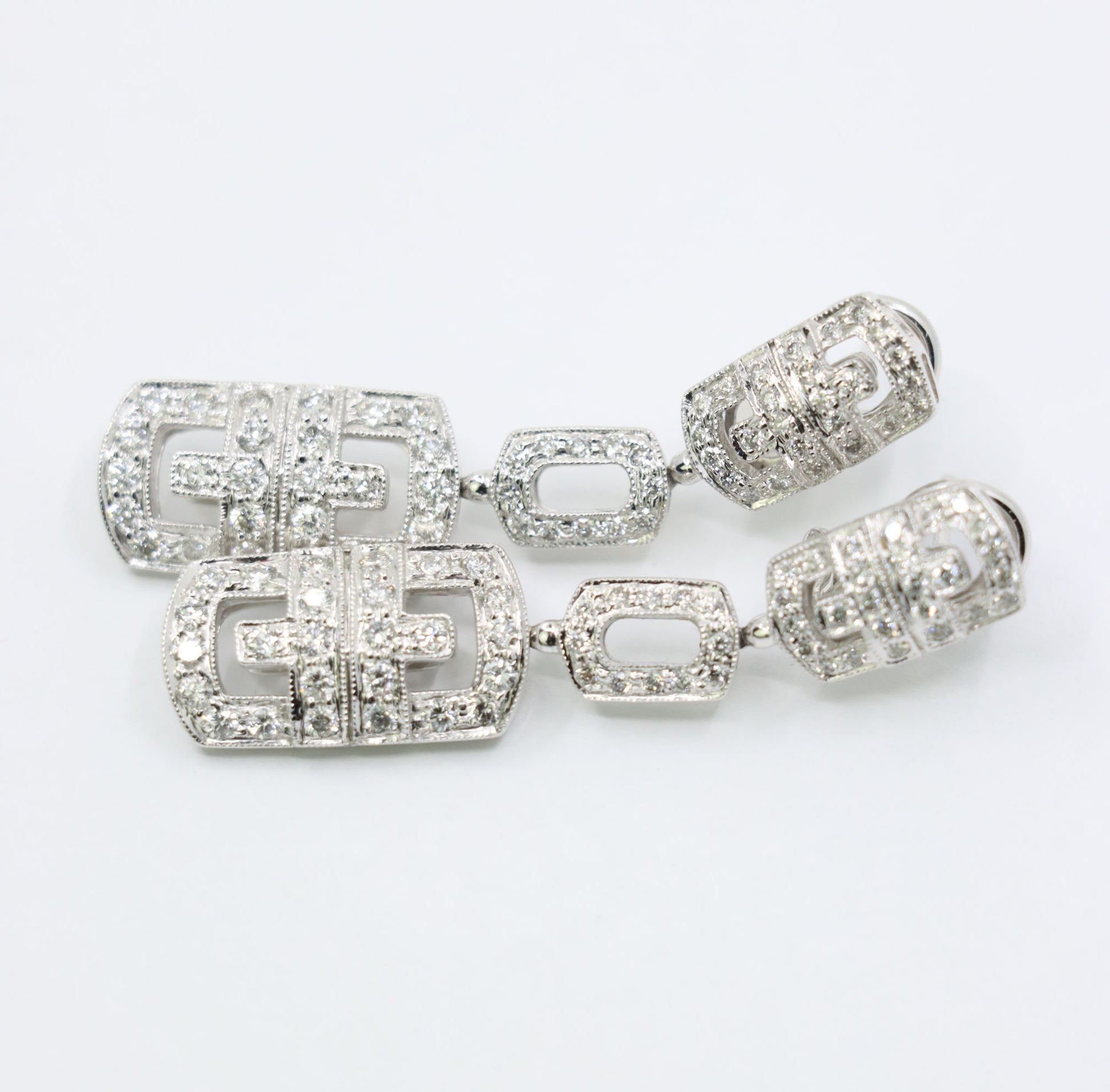 Vintage 18K White Gold Diamond Link Drop Earrings